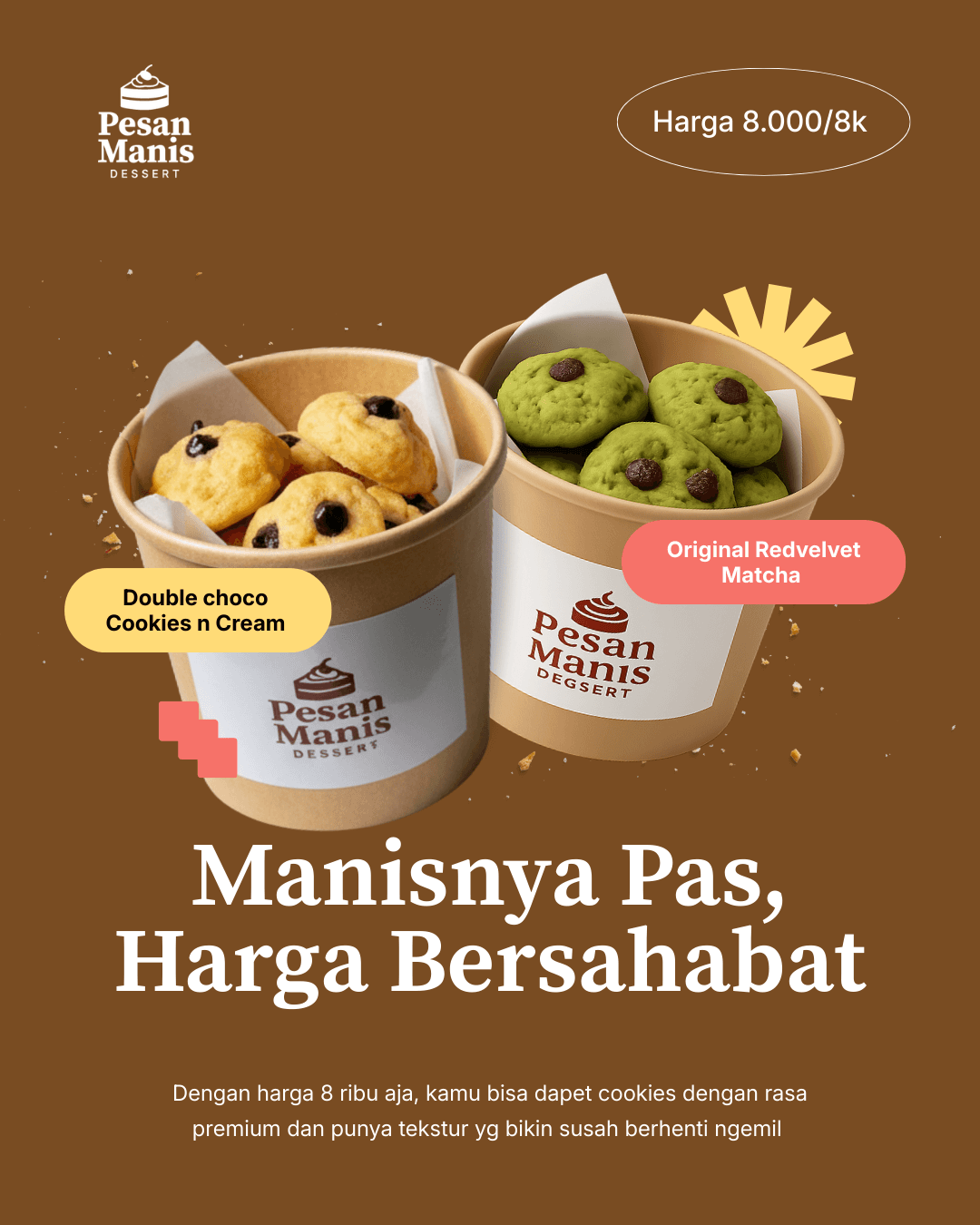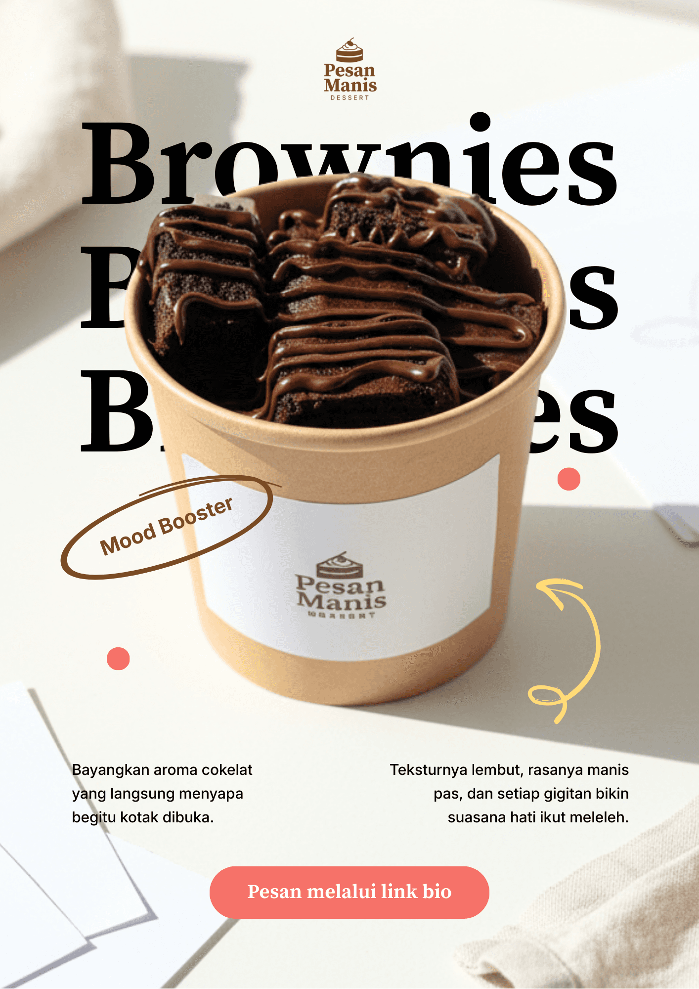 Visual dibangun dari objek, ruang, tipografi, dan sistem agar brand tampil konsisten dan terarah.